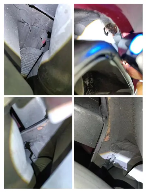 检查内饰细节,可以看到座椅骨架没有锈蚀痕迹,电脑接头、点烟器座没有锈蚀痕迹,保险丝盒没有泥沙锈蚀痕迹。