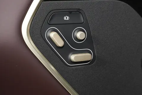 坐进到车里,这辆车的内饰采用勃艮第红配色,看着挺有质感的。内饰所能接触的部位基本都被软质材料覆盖,边缘加入了缝线点缀。另外方向盘、车门、中控台的两侧还加入了香槟金色装饰板,提高了内饰的档次感。全液晶仪表和副驾驶屏幕尺寸都是10.25英寸,中控屏幕尺寸是15.6英寸,搭载的是HarmonyOS系统。屏幕界面的UI设计比较简单,像常用的空调按键放在了屏幕的最下面,当然,用户也可以将常用功能拖拽到这里,便于开车时操作。较多APP可以在应用商店内下载,操作过程并不复杂。另外这辆车还支持手势控制,这是比较少见的功能。语音助手唤醒词是“小塔小塔”,坐在二排的乘客也能使用,对于连续性语音指令的识别准确度是比较高的。