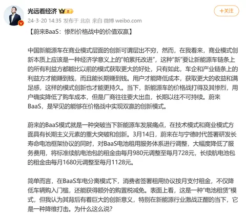 最近蔚来BaaS调价惊动了很多人,有车主、有潜客、有友商、还有经济学家