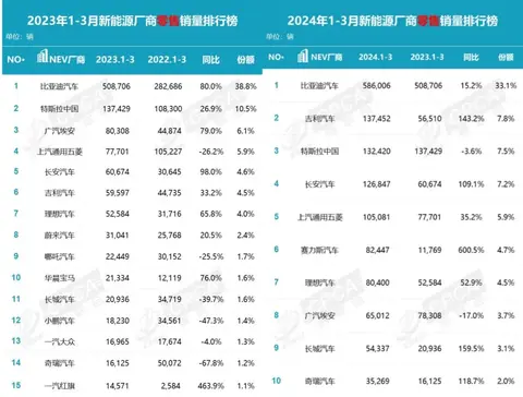 最近,根据乘联会最新发布的车企3月零售销量排名,新能源汽车市场格局仍“动荡”不断。