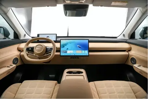 车内部分,新车的设计较为简洁,配备了椭圆形的方向盘和15.6英寸悬浮式中控大屏,采用怀挡设计,空调出风口做了隐藏式处理,并采用一体式座椅,基本上和目前主流的新能源车型相似。
