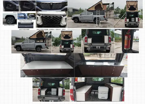 保靓Jeep角斗士宿营车更像一台改装完成状态的Jeep角斗士,新车配备越野轮胎/轮圈、涉水喉,接近角离去角可以达到43/26°。新车的改装思路是在货箱内部架设背驼。