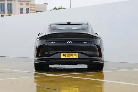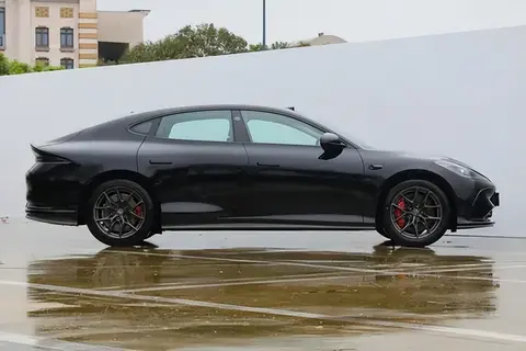 车身侧面采用溜背式设计,顶部配备了激光雷达,翼子板处安装了高清摄像头,隐藏式门把手和19英寸熏黑轮辋造型使得车身更具现代感。尾部设计有贯穿式尾灯组,并在尾灯组轮廓处设计了向内的凹槽,顶部有运动风格的翘起鸭尾,整体设计与车头呼应。新车尺寸为4931x1960x1474mm,轴距为2950mm。