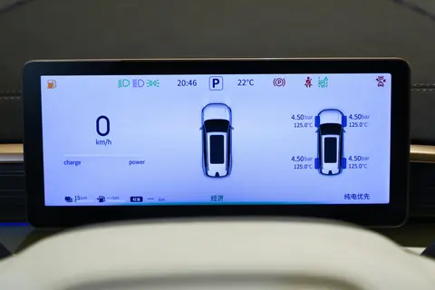 纯电版车型用的也是纯电动 272马力后置电机。电池组是82.28度的磷酸铁锂电池。纯电续航里程636km。