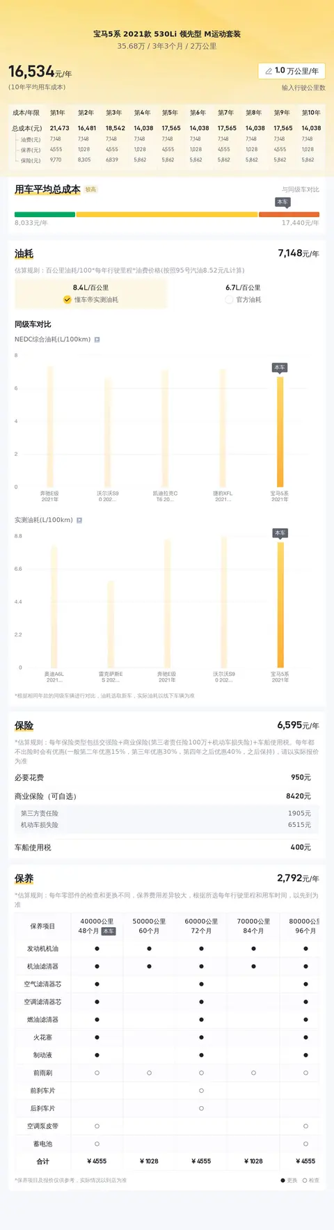 在用车成本上,根据我们估算,这辆车年均综合用车成本大概在每年1.7万元左右。不过,这个金额并不是绝对的,具体的花费跟车主的用车频率及用车环境都有直接联系。