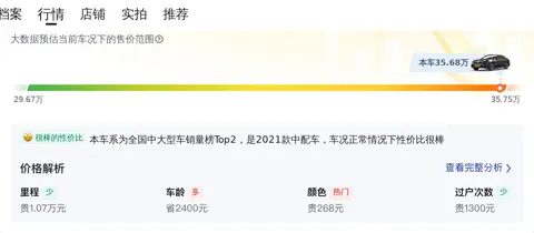 市场行情方面,目前这款车的二手车行情大致在29.67万至35.75万之间。当然,行情价和实际成交价是有差异的,实际成交价取决于车辆的使用年限、里程和保养状况等因素。