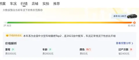 目前这款车的二手车行情大致在27.32万至32.01万之间。值得注意的是,决定每辆二手车最终售价的多项变量,包括其已使用年限、累计行驶里程及维护状况等因素。