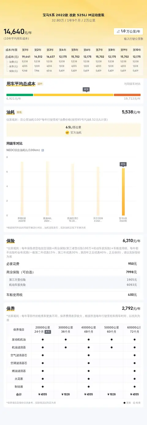 根据估算,这辆车的年均综合用车成本约1.5万元左右,当然这个用车成本跟车辆的实际使用情况是有很大关系的,如果车辆用的不多,此项花费自然也会较少。