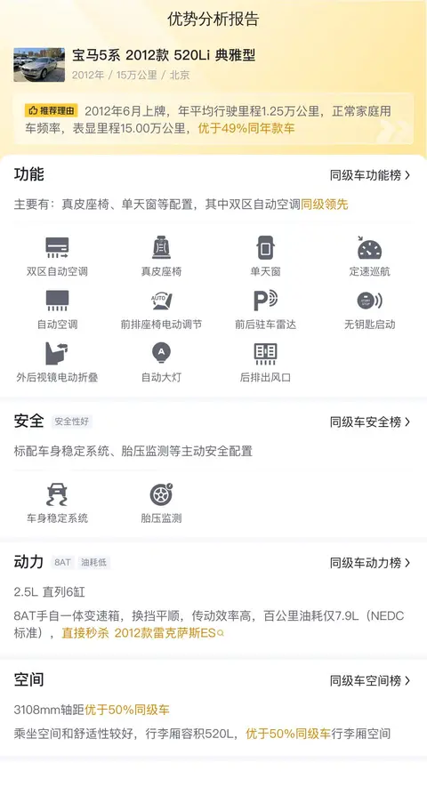 总结来说,选择二手车不仅要考虑价格,还要关注车辆的整体状况,特别是主要部件的状态和维护历史。只有综合评估,才能做出明智的选择。好了,今天的分享就到此结束,感谢您的阅读!文末还是要提醒大家一句,文中用车成本、市场行情、优势分析、同款比价等数据均源自懂车帝数据库,仅供参考,车况信息需要线下结合车辆实际情况进行综合参考。