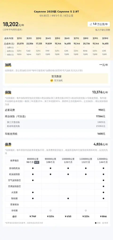 对于这么一台高端车型而言,日常维护费用也是一笔不小的开销。下面是一组该车型在使用过程中可能产生的平均花销,当然,这个跟个人使用情况也有一定关系。