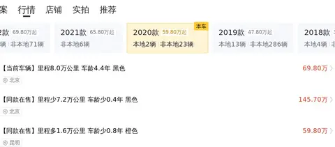 为了帮您更好的对比一下该车的价格是否合适,我们搜集了一些同款车型在全国市场的挂牌价格。