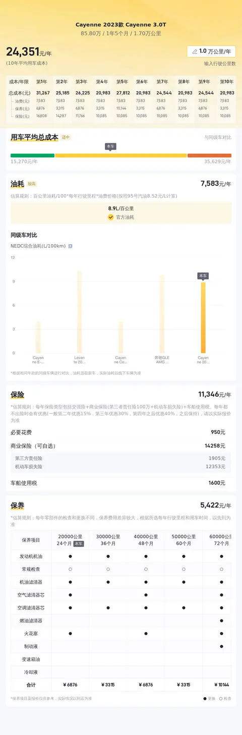 在选购二手车时,除了关注价格外,还应该考虑车辆的保养成本。经过我们估算,倘若将这款车开满一年,那么其综合用车成本大约为2.4万元。当然,这个费用会根据个人驾驶习惯有所不同。此外,它满足国VI b排放标准,对于北上广深等一线城市的朋友来说,完全不用担心上牌问题。