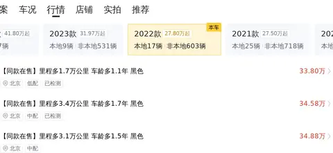 在二手车市场上,每辆车的价格都会受到多种因素的影响,包括其使用的年限、已行驶的距离以及当前维护状况。为此,我们收集了一些类似车型的信息,以便您了解它们的市场价格。需要注意的是,这些信息可能不足以全面反映每辆车的真实价值,因为每一辆车都有它自己的故事。