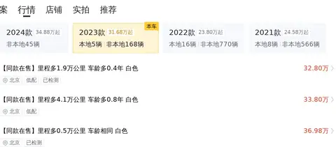 市场行情显示,当前这款车的二手车价格区间大约在34万至41万左右。值得注意的是,二手车一车一况,一车一价,车辆的最终售价会由其具体的车况来决定。