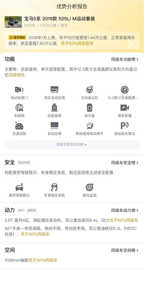 除了以上的车辆实拍图,我们还准备了一些该车型在日常使用过程中,通过我们大数据分析提炼出的优势分析,希望可以帮助到您更加深入的了解一下这款车与同级别车型相比会有怎么样的表现。
