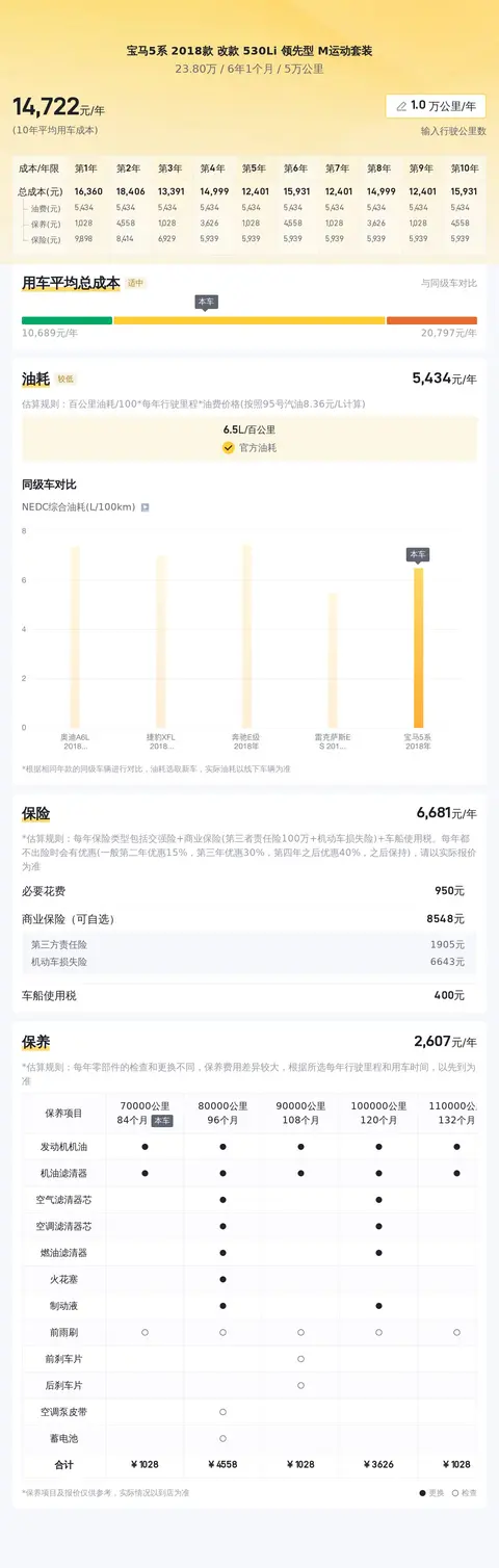 谈及用车成本,根据我们的估算,这辆车的年均综合用车成本大约在1.5万元左右。当然,这个费用会根据车主的实际使用情况有所变动。