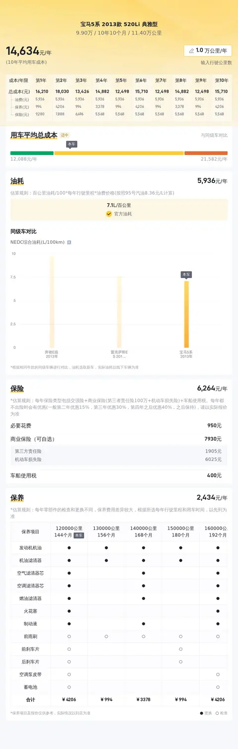 市场行情显示,与这款车相同年份、里程数的宝马5系,平均售价在10万左右。当然,这只是平均价格,具体成交价还是要看车况。