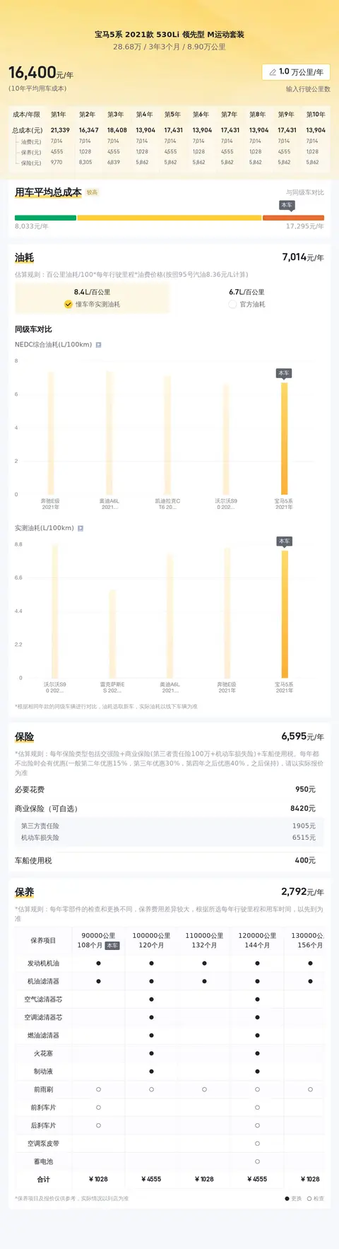 关于车辆的使用成本,根据我们估算,这辆车的年均综合用车成本约1.6万元左右。不过,具体的花费还是要视车主的使用情况而定。