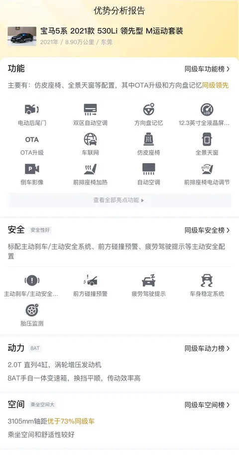 随着豪华品牌的普及,越来越多的人开始接触BBA,而宝马作为其中的一员,其产品线丰富多样,深受消费者喜爱。今天我们就为您带来一款二手宝马5系(图片|配置|询价),看看它能否满足您的需求。首先我们来了解一下该车的基本信息,该车的具体版本为2021款 530Li 领先型 M运动套装,属于中大型轿车类别,首次上牌时间为2021年02月,目前跑了8.90万公里。该车是在东莞售卖,并且也是在东莞上的牌照,有过1次过户记录。该车新车指导价为46.79万,而如今二手车报价仅为28.68万。