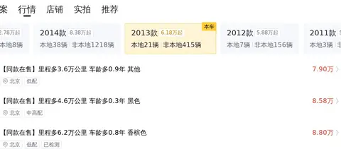为了更好地帮助大家了解这款车的市场价格情况,我们查看了当下这款车的二手车行情。目前这款车的二手车行情大致在8.38万至11.01万之间。在全国范围内,同款车型的售价存在差异,主要由车辆的使用年限、行驶里程以及维护状况等因素所决定。为了更直观地比较这款车型的全国价格,我们将提供相似车型的价格概览。
