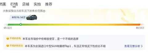 在购车时除了关注车况,也要对比一下市场价格。当前市场上,这款保时捷Cayenne的二手价格大约在69万到81万左右。需要注意的是,相同车型由于车龄、里程以及车况的不同,其价格也会有所差异。