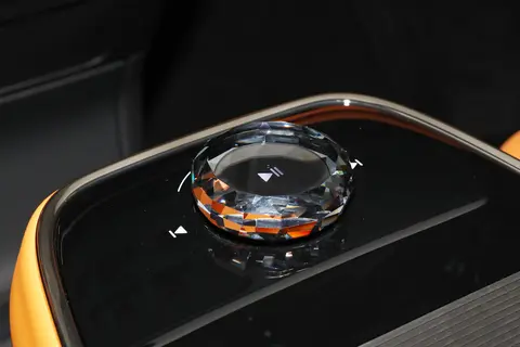 该车采用了悬浮式的中央扶手,主副驾驶之间形成贯通的布局,在中控台上配备了一颗水晶材质的旋钮,用于控制多媒体系统,是车内的点睛之笔。