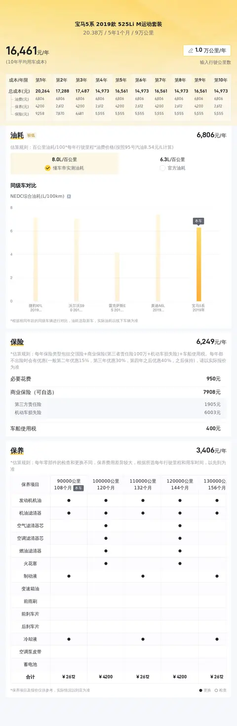 当前市场上,这款车型的二手车价格区间大约在21万至25万左右。而用车成本方面,我们根据以往车主的使用情况预估,这辆车的年均综合用车成本约1.6万元左右。