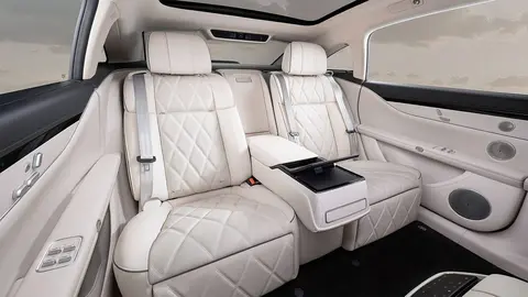 内饰方面,新车大面积采用米色配色,并在空调出风口、车门内饰板等处加入了镀铬元素进行妆点,营造出了非常不错的豪华感。与此同时,新车配备三辐式多功能方向盘、大尺寸悬浮式中控屏,再配合上全液晶仪表,显得科技感十足。值得一提的是,新车副驾应该是座椅进行了前向折叠,从而为后排乘客提供更好的女王座椅体验。并且可以看到,前排座椅后方有MagLink接口可外接平板电脑。