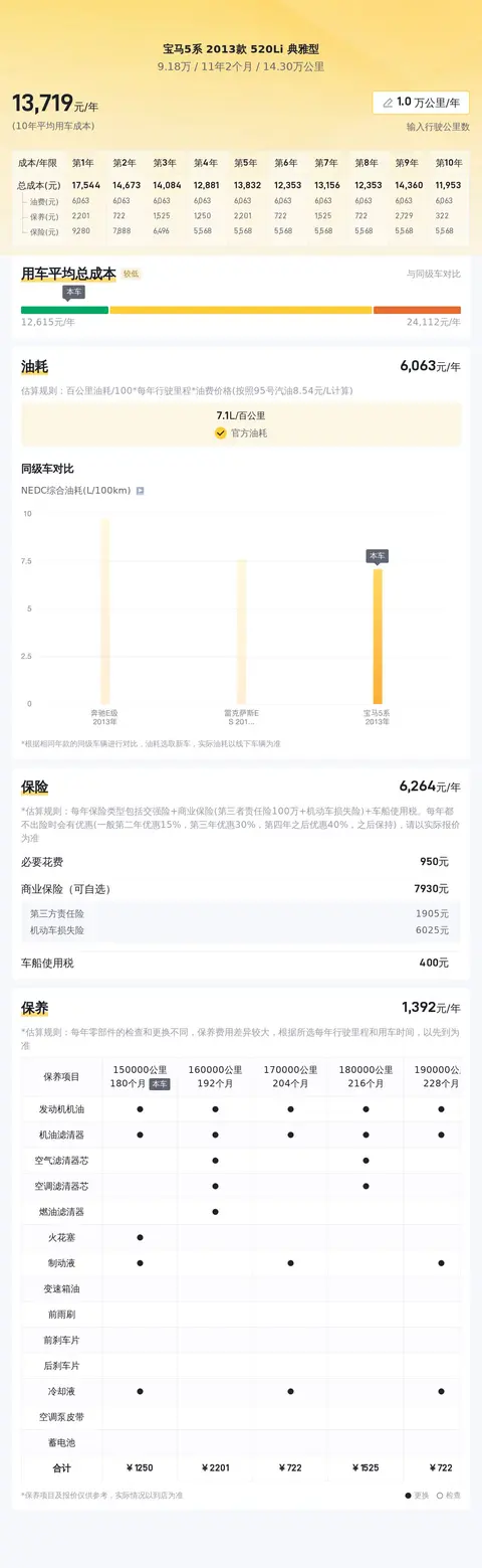 首先,让我们快速了解一下这辆二手宝马5系的基础信息。这是台2013款520Li典雅型,属于第五代宝马5系,其定位为中大型轿车,主要负责家用与商务出行。该车于2013年5月首次上牌,至今已跑了14.3万公里,不过令人惊喜的是,它没有过任何过户记录。该车最初的新车指导价为43.86万元,而如今二手车商报价仅为9.18万元,相比新车价格便宜了33.68万元。当前车源所在地及上牌地均为成都。