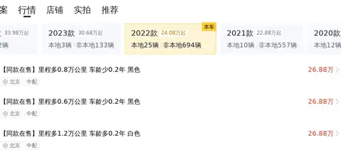 当前市场上对这款车型的二手车行情大致处于25.56万至30.66万之间。但需要注意的是,市场价格并不等于最终售价,因为每台车的车况都有所不同,因此实际销售价格会受到车况等因素的影响。下面我们将展示一些在全国范围内售卖的相同车型,以便您对比它们的价格。