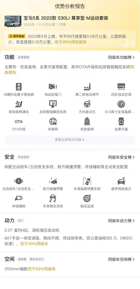 在用车成本方面,根据估算,这辆5系的年均综合用车成本约1.5万元左右。当然,这个费用会根据您的实际使用情况有所浮动。