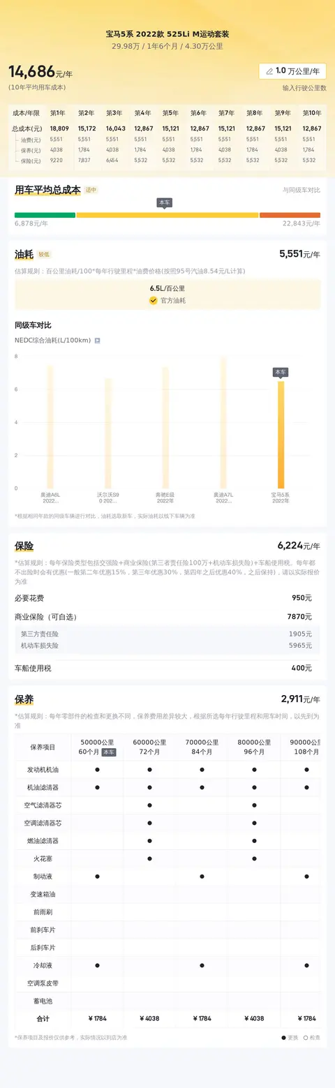 用车成本方面,根据估算,这辆车的年均综合用车成本约为1.5万元左右。这一数据仅供参考,实际费用会根据用车习惯和环境等因素有所不同。