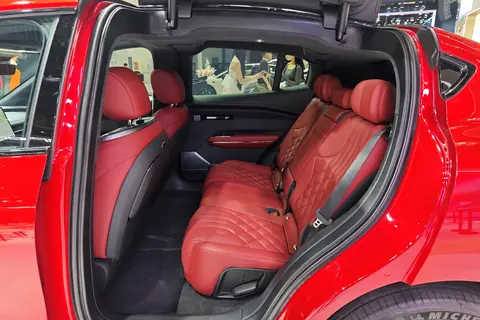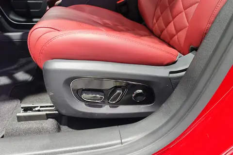 座椅方面,配真皮座椅,触感及乘坐感不错。前排座椅支持电动调节,主驾座椅带按摩功能。另外,副驾驶座椅被称为“女王座椅“,支持零重力模式,可实现143度躺平,第二排座椅靠背角度也能调节,能为乘客带来舒适的体验。