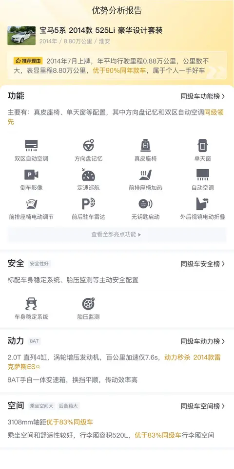 文中用车成本、市场行情、优势分析、同款比价等数据仅供参考,车况信息需要线下结合车辆实际情况进行综合参考,祝您购车愉快!