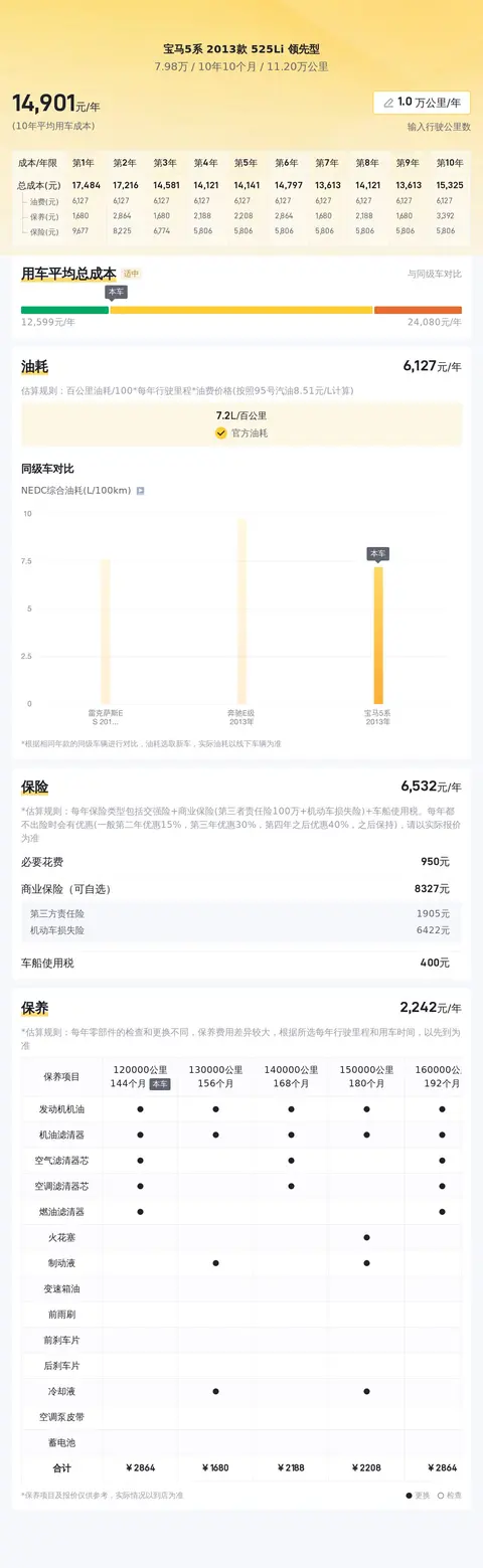 用车成本方面,根据估算,这辆车的年均综合用车成本大约在每年1.5万元左右。不过这个数字会根据车主的用车习惯和环境等因素有所变化。