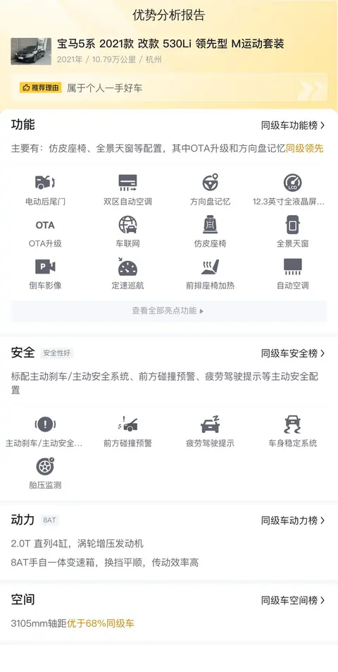 此外,我们还对这款车进行了全国范围内的综合分析,总结出了一份优势分析报告。