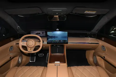 内饰的设计在简洁中又多了些豪华感,毕竟也是50万级别的D级车,新车配备小巧粗壮的异形方向盘、15.6英寸的中控屏、12.3英寸的液晶仪表盘等等,此外新车全系配备真皮方向盘、实木内饰、二排老板座小桌板以及后排扶手冷暖箱,并且四个车窗均采用双层夹胶隔音玻璃,用料方面不用担心。