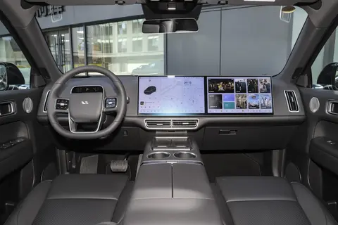 理想L6的内饰设计同样延续了家族式布局设计,整体风格较为简约,但是又能满足你想要的一切,配备由15.7英寸中控屏与15.7英寸副驾娱乐屏组成的3K分辨率双联屏,。车机系统搭载高通骁龙8295芯片,支持5G网络、AI理想同学。另外,新车支持3.5千瓦对外放电功率,方便外出游玩时的需求。 理想L6后排座椅支持电动调节,最大倾斜度达到40度,并且后排中间座椅也提供加热功能。后备厢容积足够满足日常需求,并支持4/6比例放倒,方便家用。
