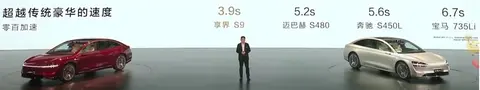 零百加速也更短,享界S9的零百加速只有3.9s: