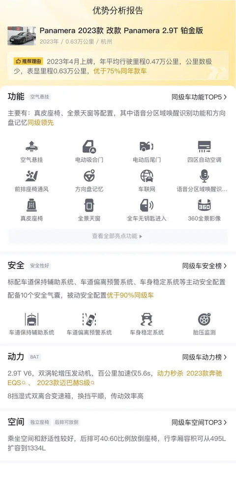 总的来说,Panamera 2023款 改款 Panamera 2.9T 铂金版是一款集豪华、性能和安全于一身的高品质车型。虽然价格相对较高,但其出色的性能和配置使其在市场上具有较高的竞争力。如果你对豪华四门跑车感兴趣,那么这款Panamera绝对值得考虑。