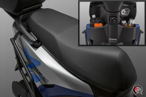 实用性方面,原厂提供了支持快拆的尾箱,满足了头盔以及随身物品的存在,同时双人出行舒适性表现更为出色。纯平踏板以及前开放式的储物盒、中央置物挂钩满足了日常代步出行买菜接娃的基本需要。此外,座下空间可容纳一顶四分之三尺寸的头盔。整备质量113kg,油箱容量6L,满足了日常300km左右的续航需要。