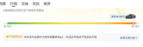 市场行情方面,目前这款车的二手车行情大致在30.79万至36.78万之间。