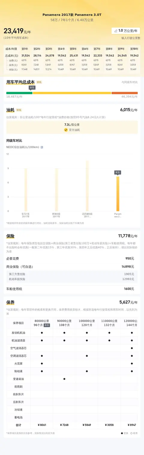 在二手车市场,这款车型的售价通常在49.67万至60.63万之间,当然,具体的售价会受到车龄、里程以及保养情况等因素的影响。据估算,这辆车的年均综合用车成本约为2.3万元左右,实际费用可能会因用车强度和环境等因素而有所变化。