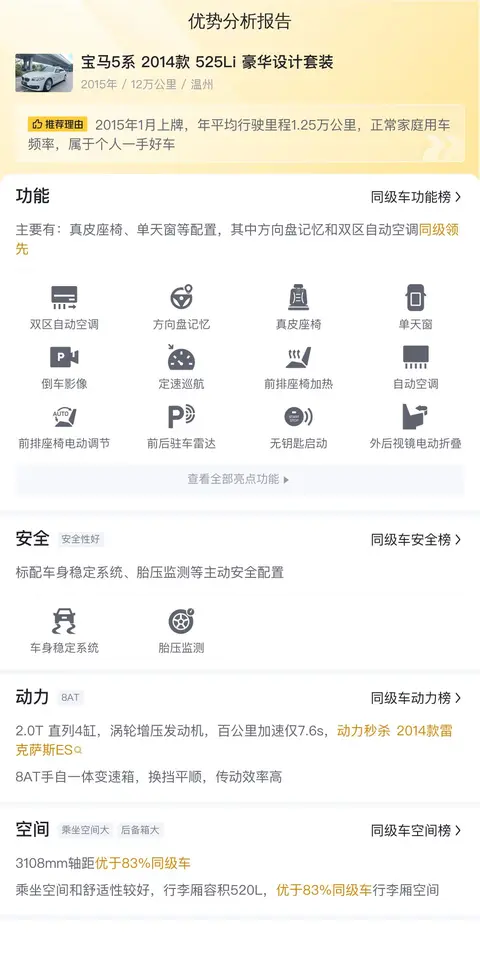 综上所述的新车含税价、用车成本、市场行情、优势分析、同款比价等数据仅供参考。在配置部分,因为二手车非标品,车辆可能会存在配置改装的情况,具体车况信息需要线下结合车辆实际情况进行综合参考。
