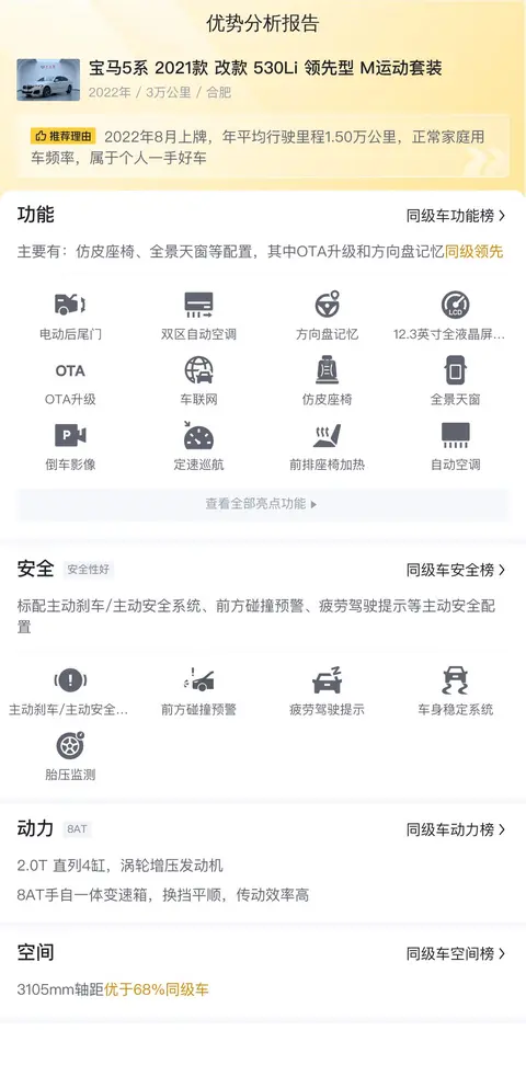 今天介绍的这辆宝马5系具体版本是——宝马5系 2021款 改款 530Li 领先型 M运动套装,上牌地为合肥,上牌日期2022年8月,表显里程3万公里,新车指导价46.19万,二手车报价31.38万,过户次数0次。支持分期购车,首付9.4万即可拥有它。