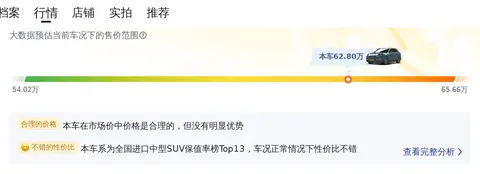 综上所述的新车含税价、用车成本、市场行情、优势分析、同款比价等数据仅供参考。在配置部分,因为二手车非标品,车辆可能会存在配置改装的情况,具体车况信息需要线下结合车辆实际情况进行综合参考。