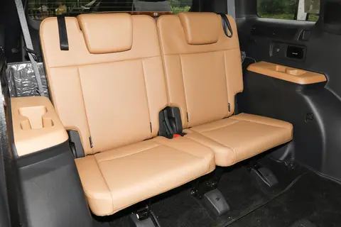 第五代胜达的车身尺寸为4830mm×1900mm×1780mm,轴距为2815mm,车内提供5座、6座、7座三种布局可选,座椅采用Nappa真皮材料,提供了柔软的触感和良好的坐感。前排调整至合适的坐姿时,身高约180cm的乘客头部空间有一拳多的余量;第二排提供两拳左右的腿部空间,头部空间一拳一指左右;第三排虽然空间稍紧凑,但仍适合成人短途乘坐。另外,车内总共拥有31个储物空间,包括大小不一的杯架、门袋以及中央扶手箱等,满足日常所需。行李舱容积在后排座椅放倒后可达到2046L,提供了充裕的装载空间,适合家庭使用和户外活动。