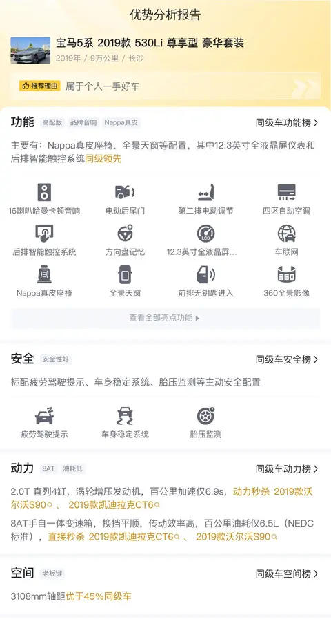 宝马5系(图片|配置|询价)530Li 尊享型豪华套装是一款中大型豪华轿车,由德国汽车制造商宝马生产。作为5系家族的高性能版本之一,530Li尊享型豪华套装在动力性能、豪华配置和科技体验方面都有着出色的表现,主要面向追求卓越驾驶体验、高品质生活和先进科技的商务人士和高端消费者。该车以其强劲的动力、豪华舒适的驾乘体验和丰富的智能科技配置,在豪华轿车市场中赢得了良好的口碑。今天给大家介绍一辆二手宝马5系 2019款 530Li 尊享型 豪华套装。