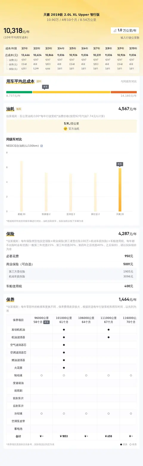 当前市场上,这款2019款天籁的二手车价格大致区间为10万至12万元左右。然而,具体的售价会因车辆的状况(如车龄、里程、外观及内饰保养情况)而有所浮动。至于购车后的平均年度使用成本,大约在1万左右,当然这个跟车主的用车习惯有直接关系。