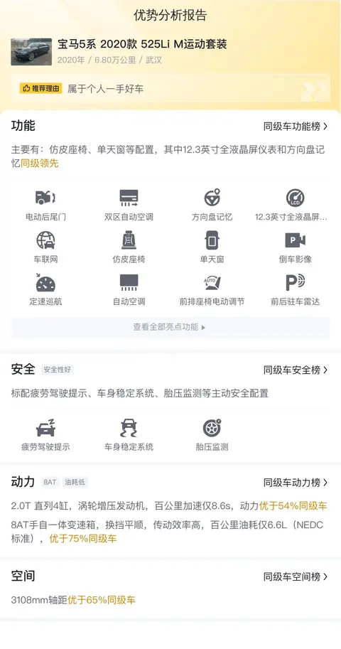 综上所述的新车含税价、用车成本、市场行情、优势分析、同款比价等数据仅供参考。在配置部分,因为二手车非标品,车辆可能会存在配置改装的情况,具体车况信息需要线下结合车辆实际情况进行综合参考。